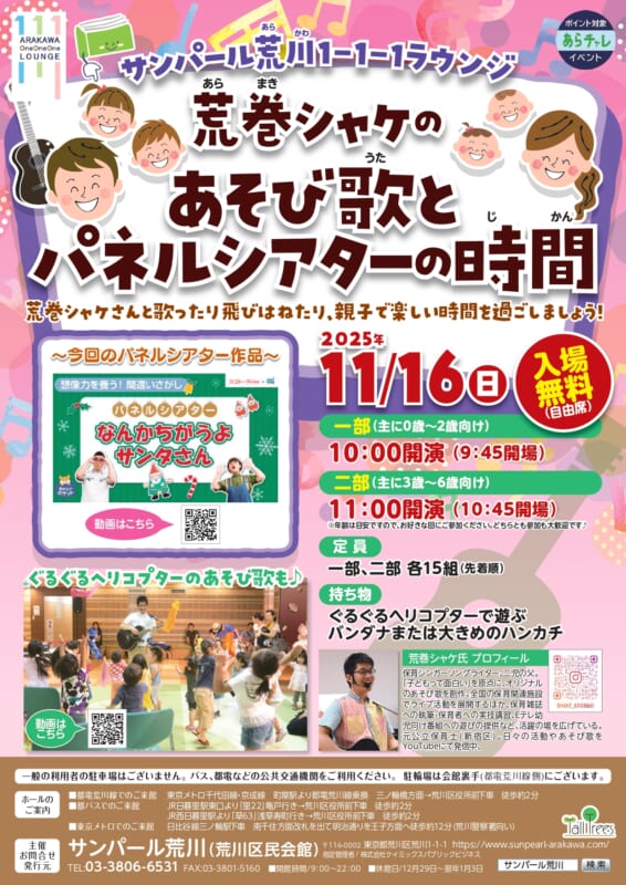 | 時間 | 1部 開場10:00 開演10:30(12:05頃終演予定) 2部 開場13:30 開演14:00(15:35頃終演予定) |